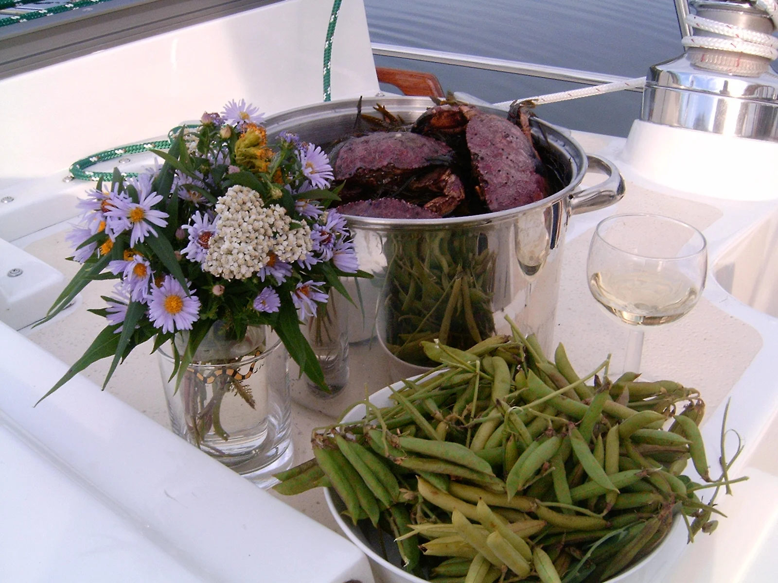 Over the weekend, Granddad (Scott) came sailing with us to Little Hurricane Island. On Little Hurricane Island there were: BIG crabs and little beach peas! We had them for dinner. Unfortunately, Granddad couldn't join us. I did not like the crab. I know. I tasted a meaty claw. In my opinion, "Yuck!"