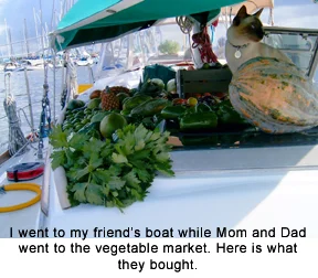 Now we have left and are in the anchorage. Mom and Dad went to the vegetable market and bought a ton.