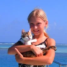 We went back to the Swimming Pool after Granny and Uncle Chris had left. We met our old friends on Williwaw, a trawler, who we had not seen since Grenada. In the meantime, my friend Jesse had gotten a calico kitten, Smudge. Smudge was blind in one eye and had been a stray in Venezuela.