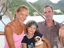 Then we sailed to Providencia with our friends Mandolin. Providencia is a Columbian-owned island but it is off the coast of Nicaragua, which is on the other side of Panama. We had a tour ride around the island in the back of a pickup truck! Haxebase was there and on our last night we had a cookout party at the Port Captain's house. It was raining, that is why I am so wet!