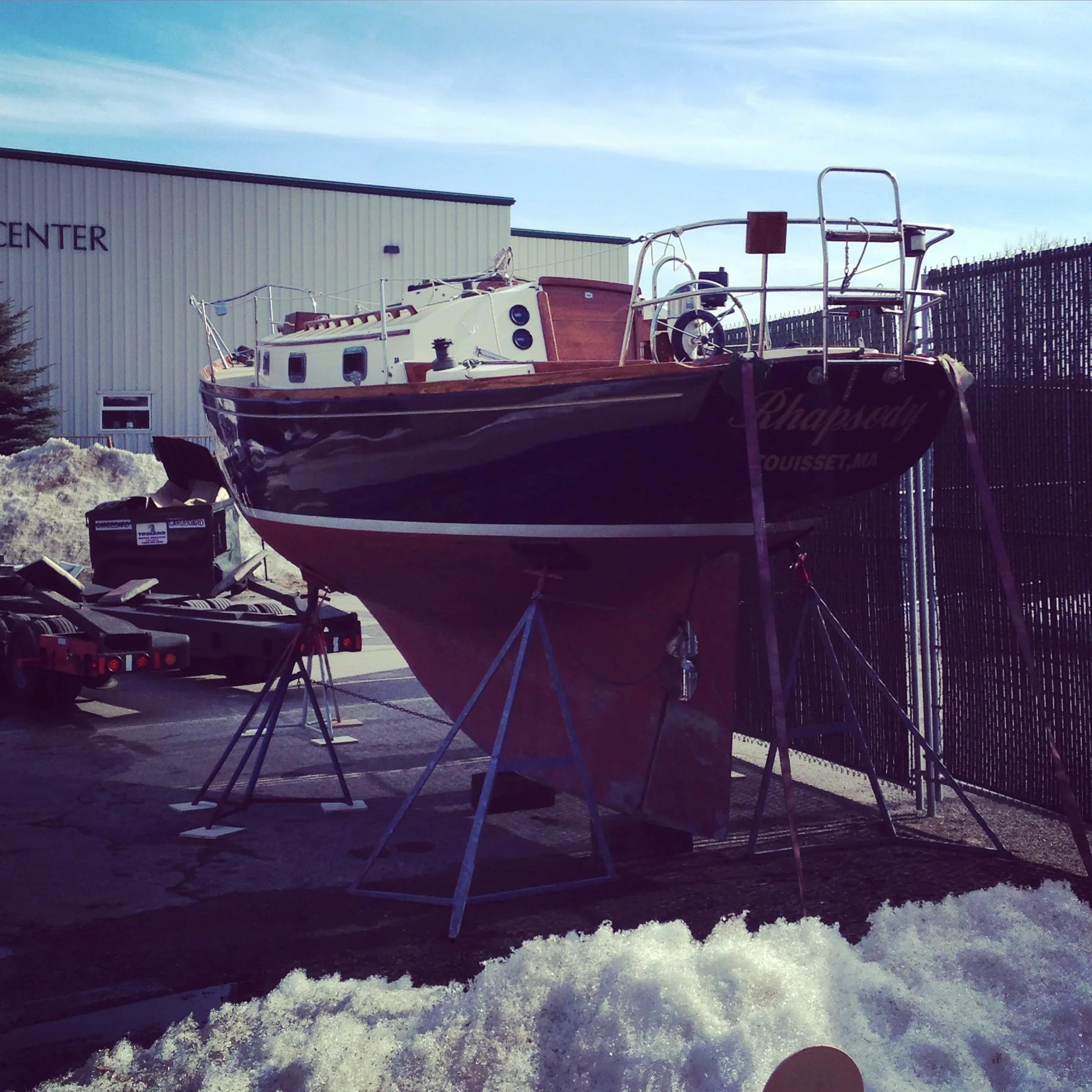 We drove down to see the boat as soon as I got back to New England, with cash in hand. She's a Luders designed Sea Sprite 30, built in 1884 by C.E. Ryder in Rhode Island. She has a hole in her hull and technically "sank" but that makes it sound a lot worse than it really is. The interior is muddy and salty, the (new) engine was underwater, and the electronics and electrical are toast... but we're hopeful this is a manageable project.