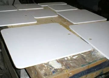 A few other odds and ends: I am painting all the berth tops (formerly just raw plywood) with white brightsides; here are the lids. Also here's a big pile of interior trim that has 2 coats of Epifanes gloss and is sanded for the next coat. It was so sad to sand them, since it WAS a big pile of gleaming, beautiful, varnished teak only an hour before!
