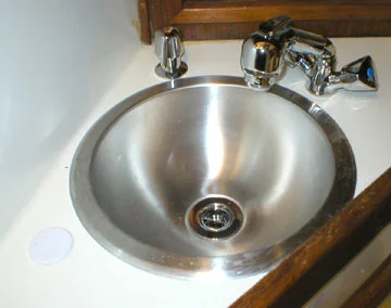 We tied up a lot of loose ends on projects around the boat. We installed the new vanity sink and faucet/shower fixture and soap dispenser in the aft head. This was one of those aggravating projects that you think is going to be simple (replace the old sink, replumb...) but ends up taking two days (old sink too warped to fit right; new one too big; new hose won't bend enough, etc.) But it's finally in! The white disk in the photo is a "blank" that covers up an old hole. There used to be one faucet each for hot and cold water, and we replaced them with a single-hole mixer.